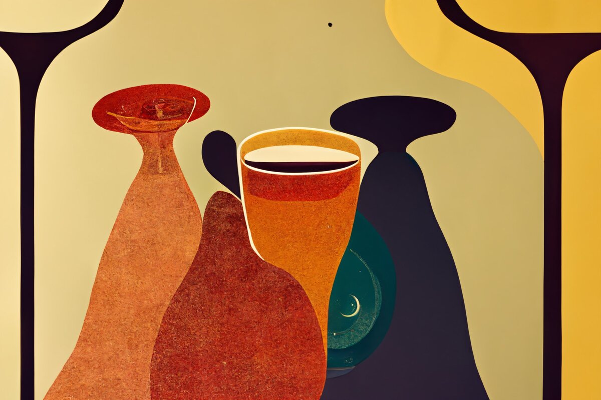 Obraz: Abstrakcyjne kubki z kawą i herbatą