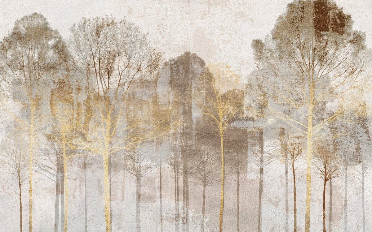 Krajobraz z lasem w beżach i odcieniach złota