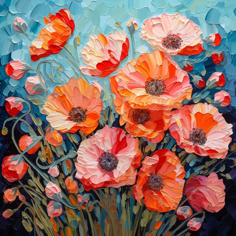 Obraz: Maki na niebieskim tle